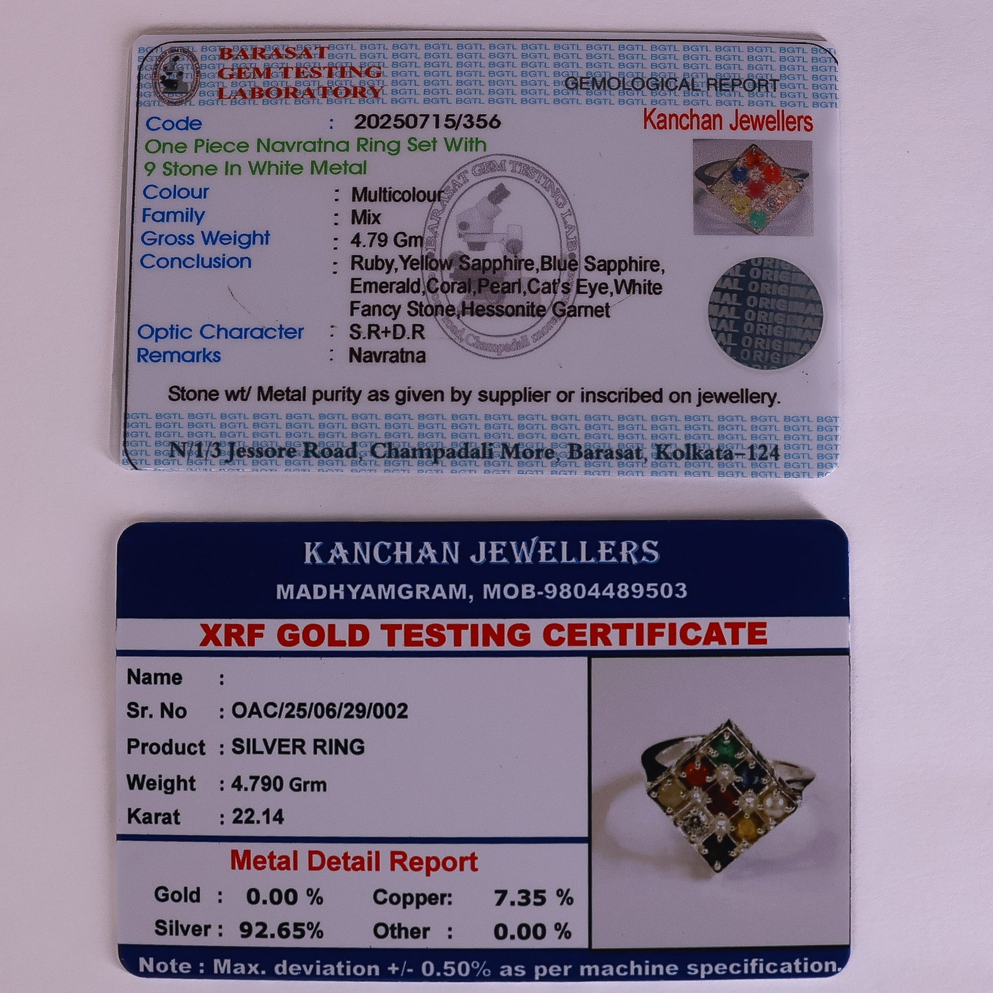 Enhance your aura and attract positive energy with this Navaratna Silver Ring for Women, expertly crafted in pure 92.65% sterling silver and adorned with nine powerful gemstones. Each gemstone represents a celestial planet, ensuring harmony, success, and well-being in every aspect of life.